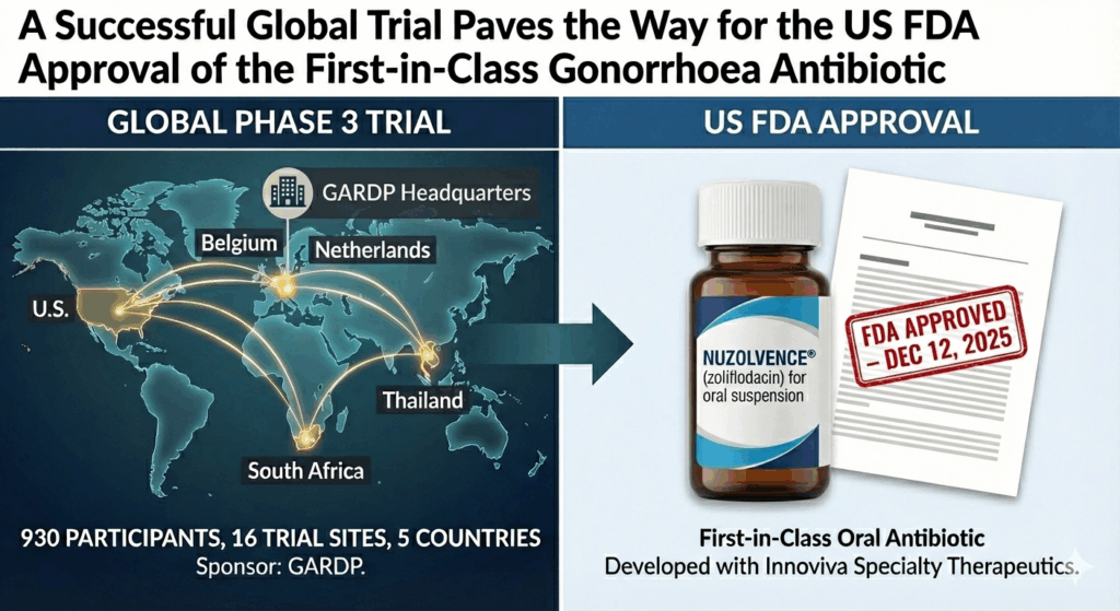 A major milestone in global health has been achieved with the U.S. FDA approval of NUZOLVENCE® (zoliflodacin), the first new antibiotic developed exclusively for the treatment of gonorrhoea in decades.